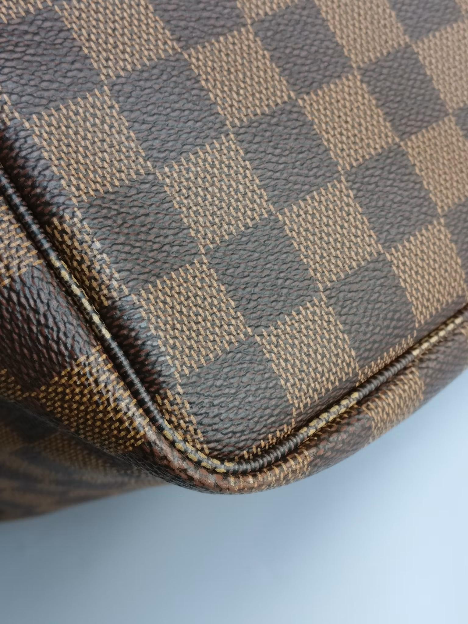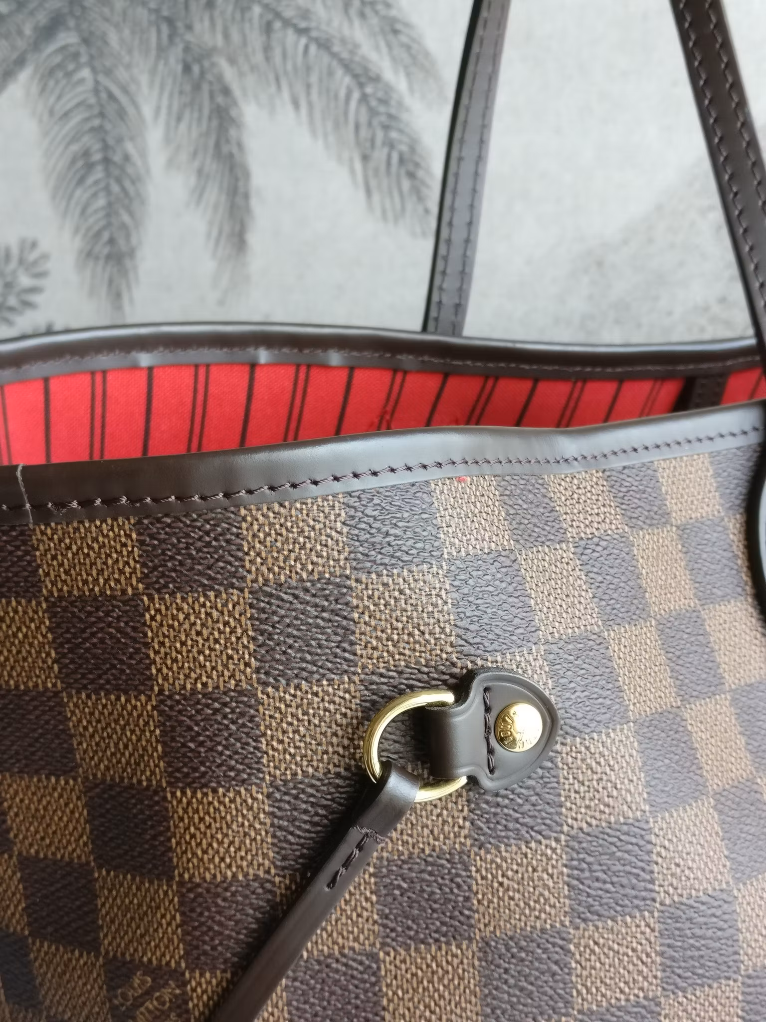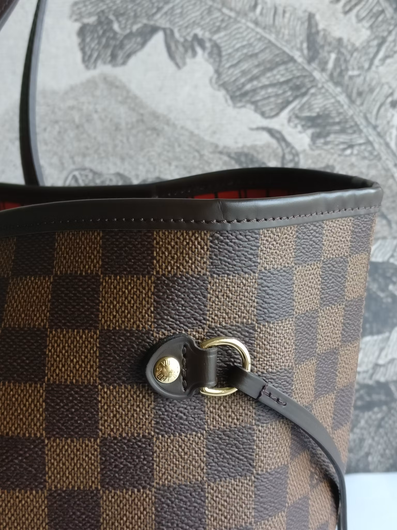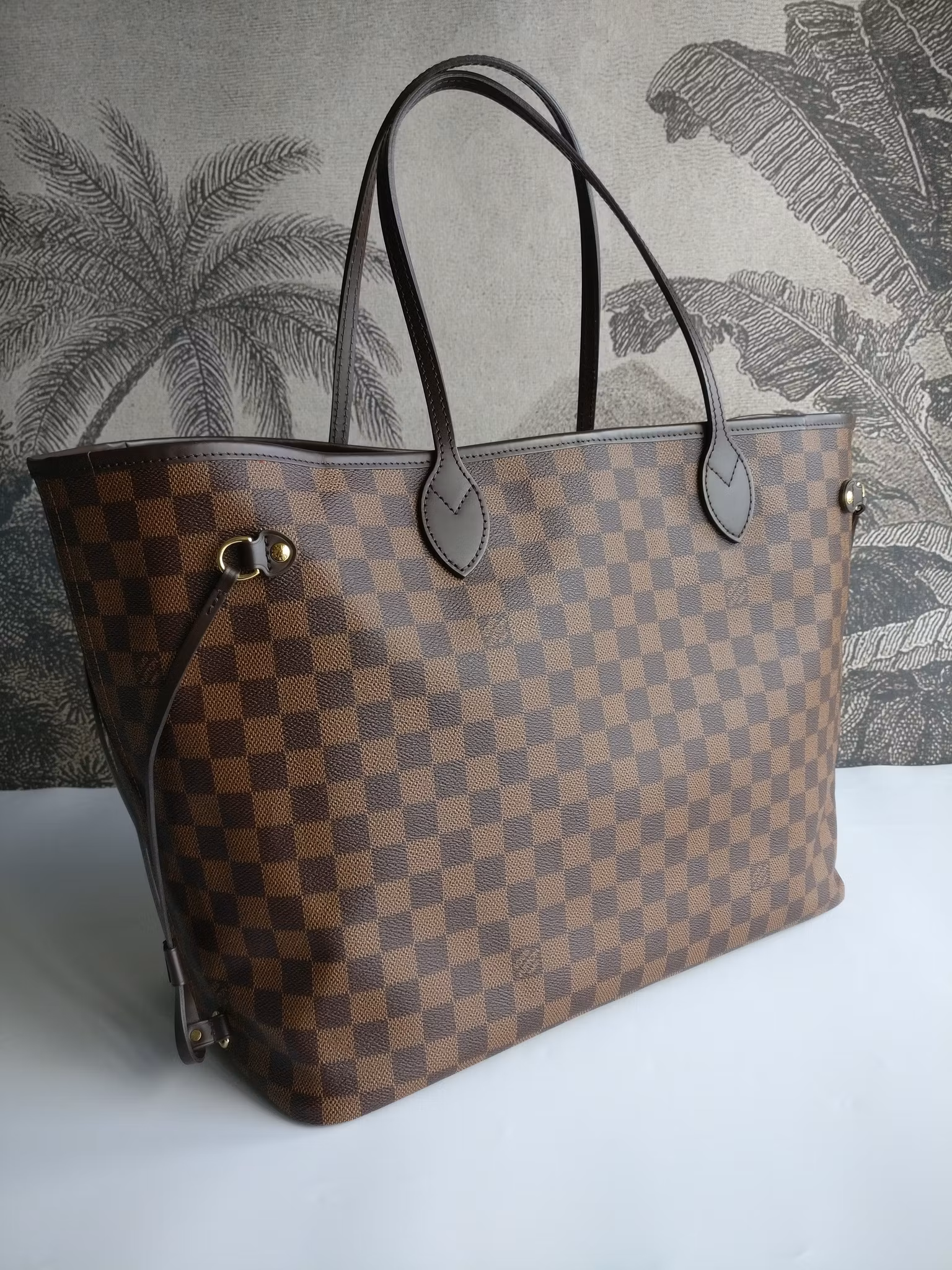 Neverfull GM från 2022 i mycket fint skick, med mindre bruksspår. Damier ebene canvas i mycket fint skick, botten är fin, nedre hörn med minimala bruksspår. Gold hardware i gott skick med fin glans. Handtagen är stadiga och i fint skick med minimala bruksspår. Övre läderkanten i fint skick med minimala bruksspår. Insidan är ren med ett ljust märke i botten. Ingen doft i väskan. Lilla extrafickan i gott skick, dragkedjan fungerar fint. Kommer med LV box (skador på boxen), dust bag, originalkvitto, äkthetsintyg, organizer. Ingen clutch. Nypris idag hos Louis Vuitton är 19.300:-