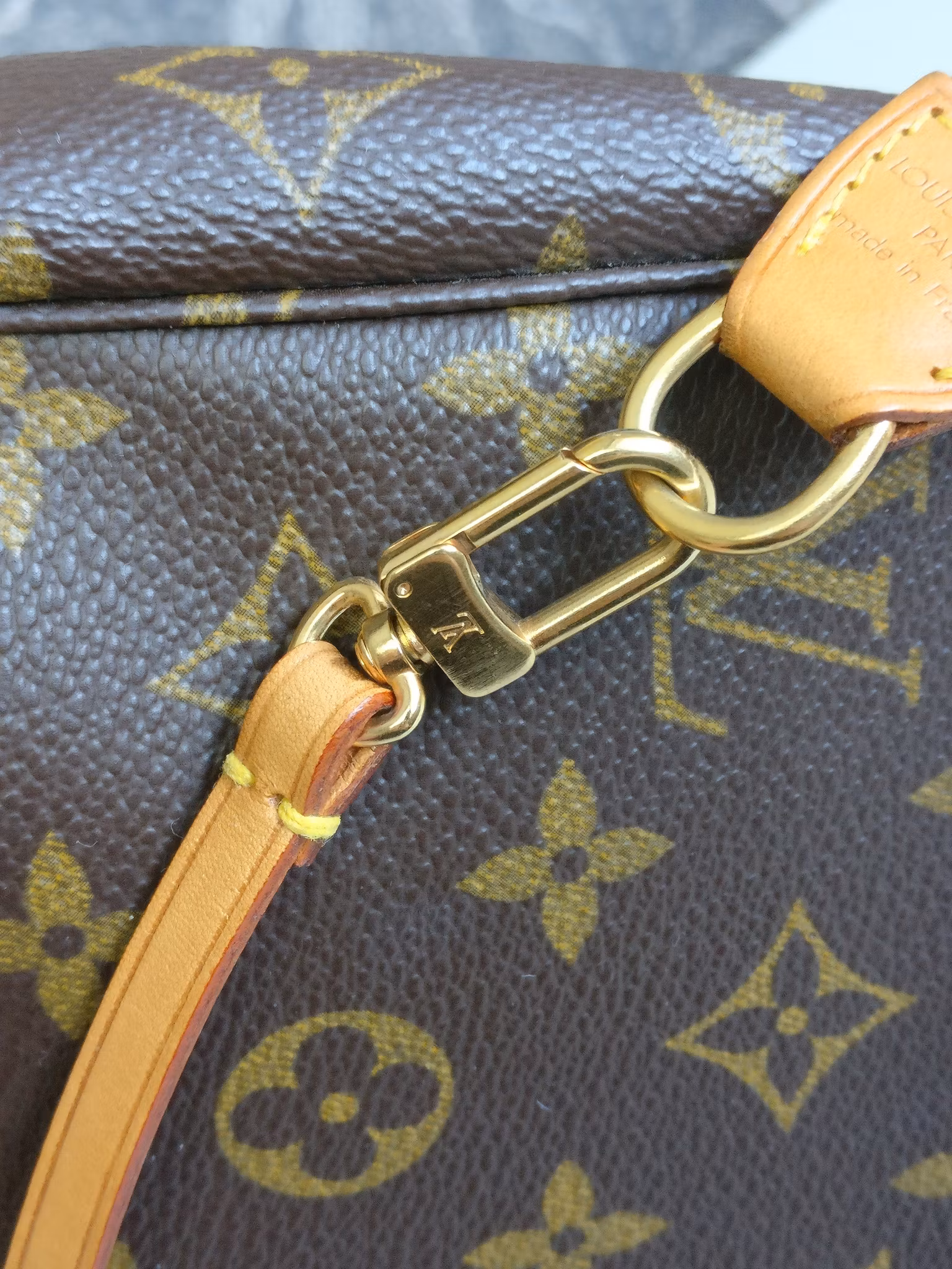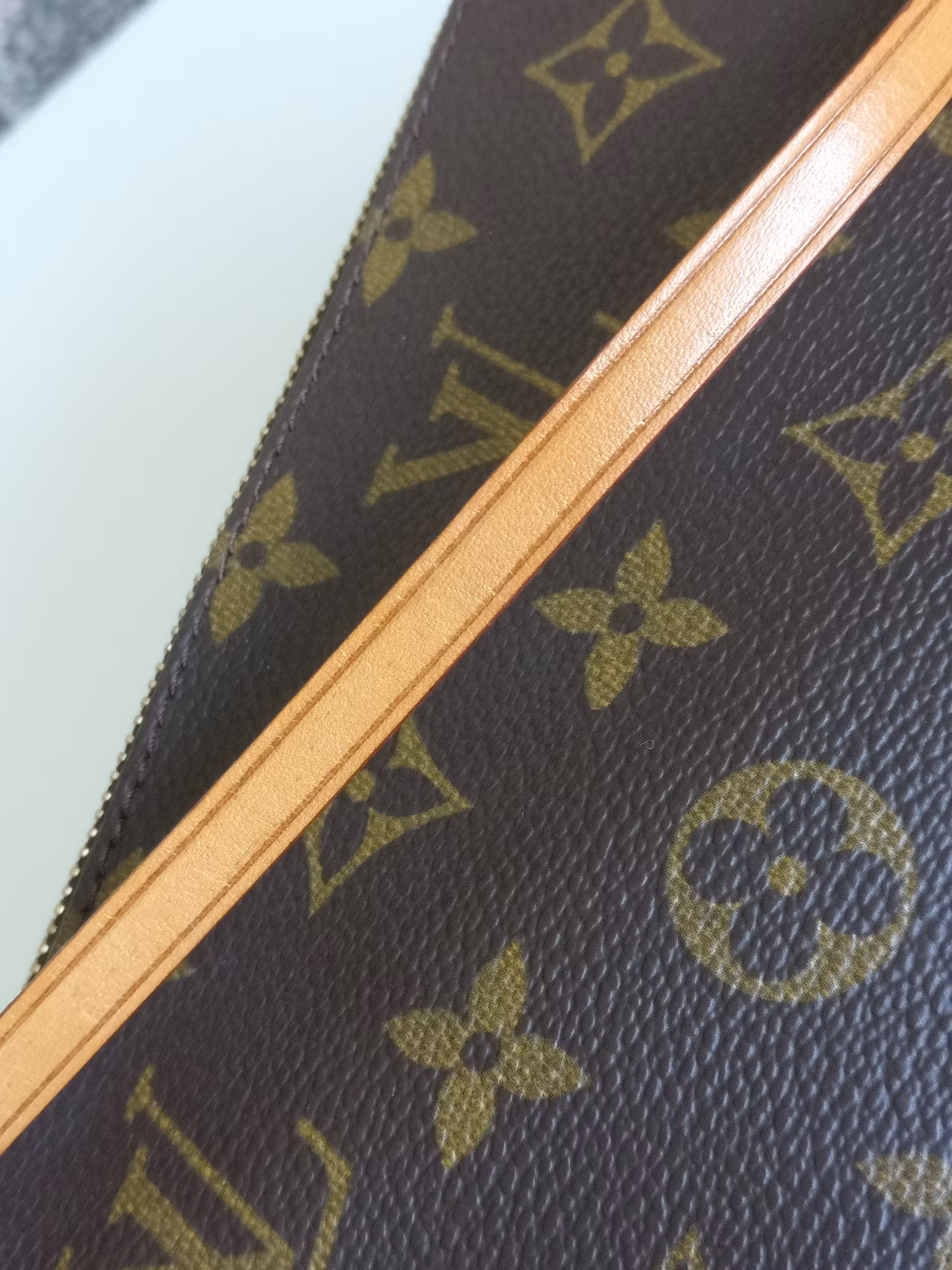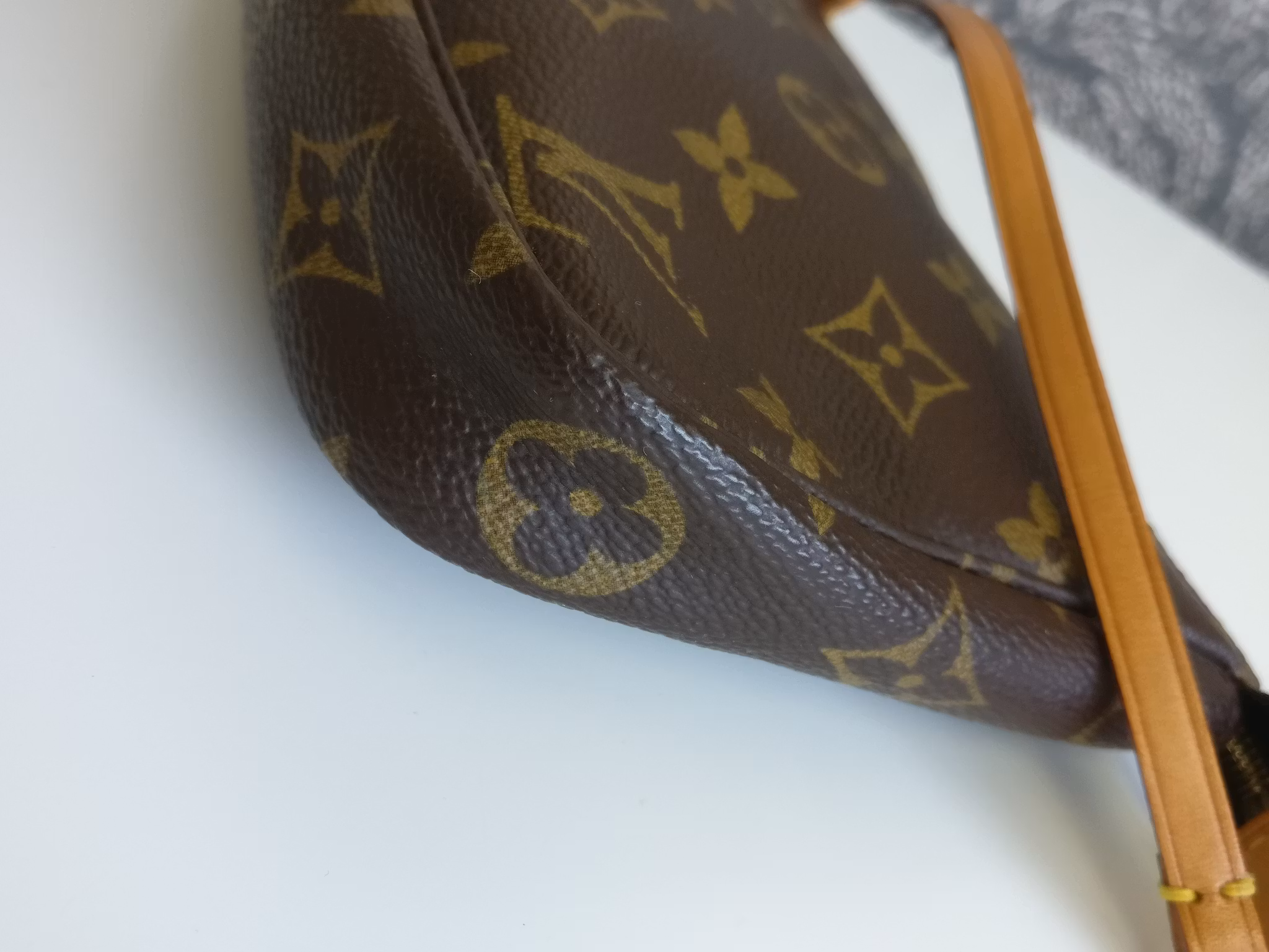 Pochette Accessoires i underbart vintageskick, mycket väl omhändertagen med minimala bruksspår. Monogram canvas är i mycket fint skick, hörnen och botten är fina. Gold hardware i gott skick med fin glans med minimala bruksspår. Vachettan har medium honungspatina. Remmen är stadig och i gott skick med små bruksspår. Dragkedjan fungerar fint. Ren inuti, ingen doft i väskan. En längre kedja eller rem kan fästas på för att bära väskan crossbody. Kommer med äkthetsintyg.