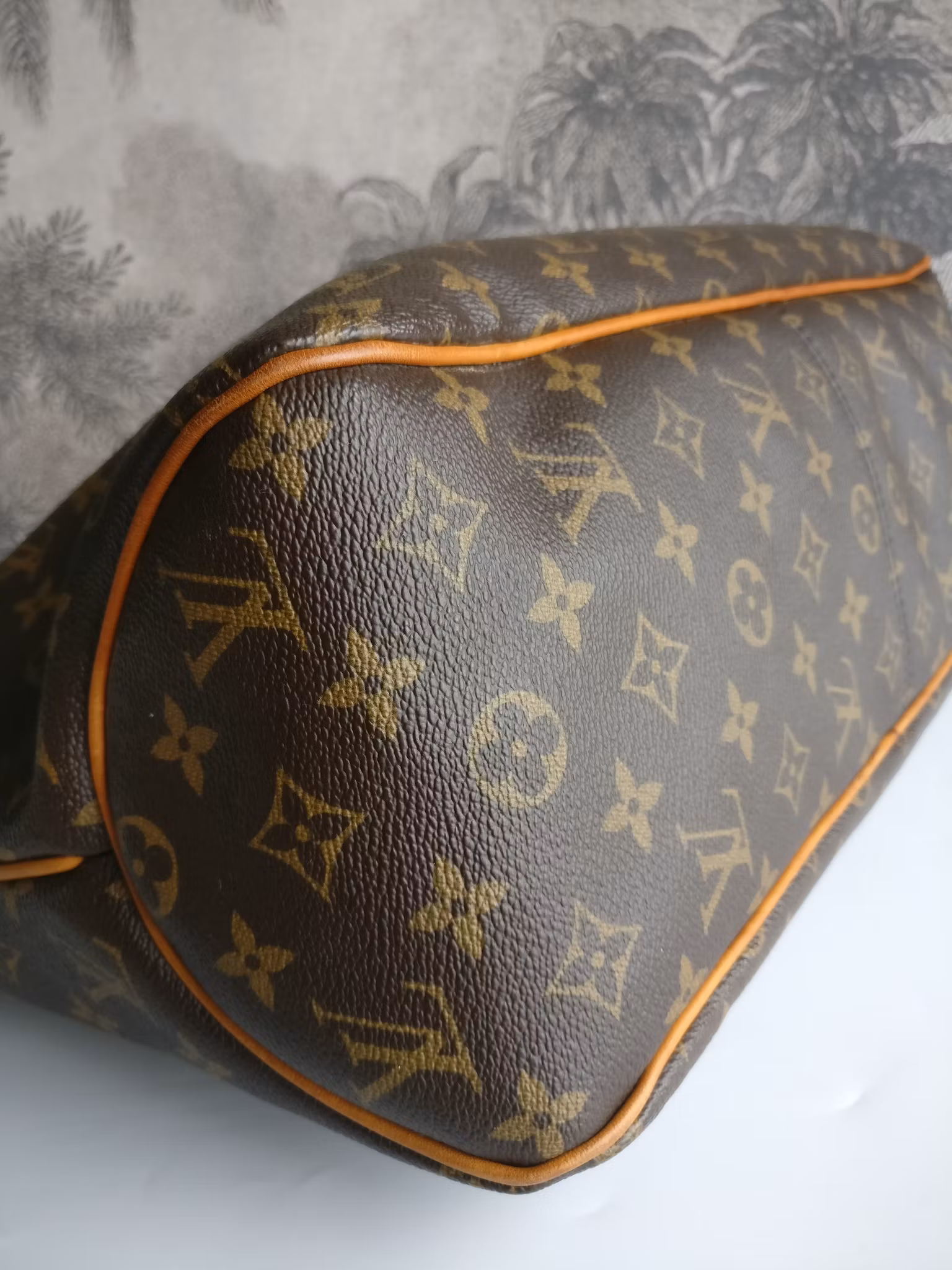 Delightful MM är en praktisk axelbandsväska/hobo, perfekt för allt man behöver ha med sig till vardags. Det breda axelbandet är bekvämt på axeln, i handen eller på armen. Väskan är i gott men använt skick, med bruksspår. Monogram canvas är i gott skick, mjuk, och följsam. Axelbandet är stadigt med mindre bruksspår såsom några märken på undersidan. Vachettan har en medium honungspatina, övre kantbandet i läder har några hack och sprickor. Hardware i gott skick med mindre färgbortfall och repor. Fodrad i beige canvas, ett huvudfack och ett extrafack med dragkedja. Insidan har några fläckar och märken från bläckpenna. Vintagedoft finns i väskan. Kommer med äkthetsintyg.