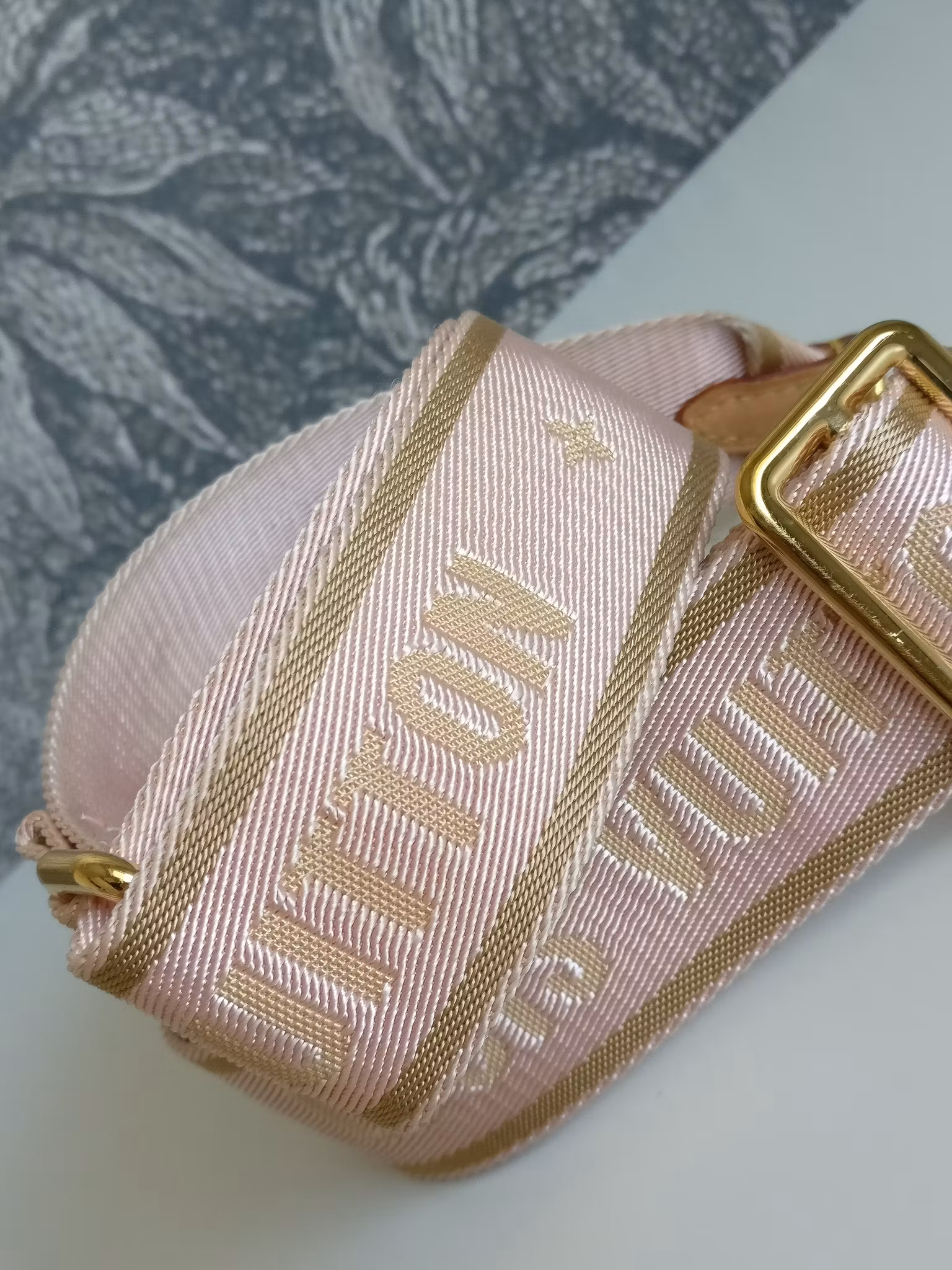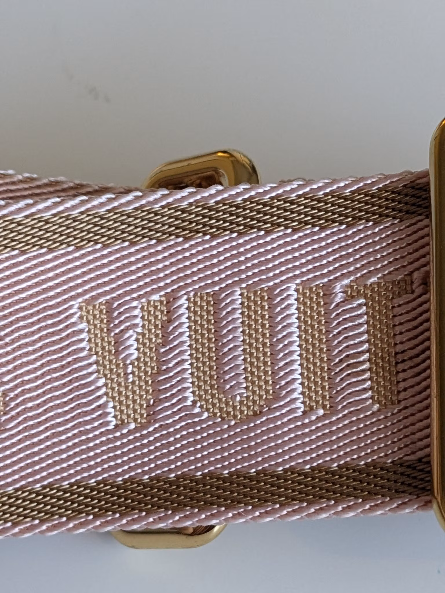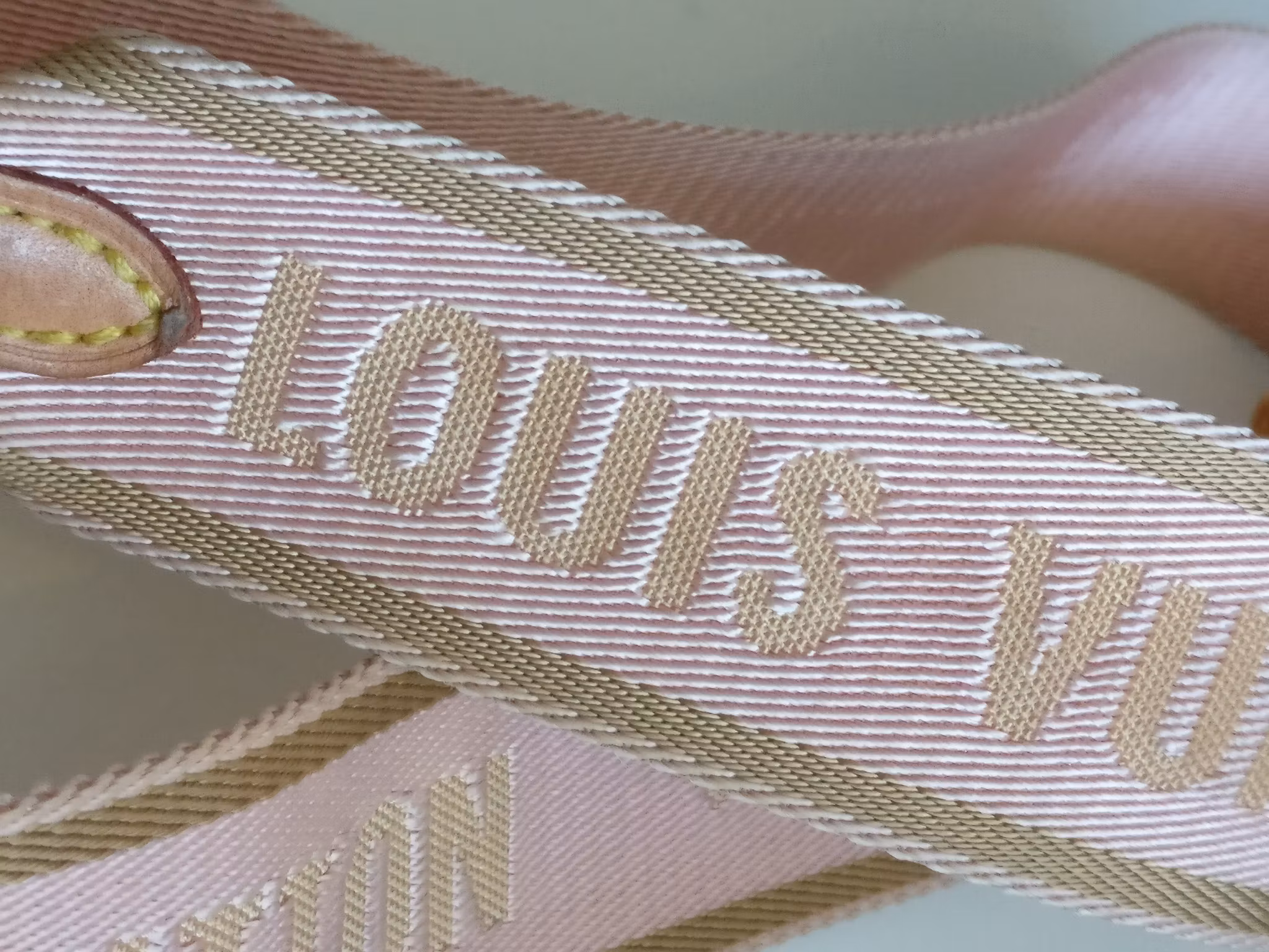 Louis Vuitton Bandouliere shoulder strap i puderrosa nylonjacquard i gott använt skick. Remmen är justerbar. Nylon canvas i gott skick, med mörkare partier på några ställen. Vachettaläder med medium honungspatina med bruksspår. Kan användas till valfri väska, kan bäras på axeln eller crossbody. Kommer med äkthetsintyg. Ingen round coin purse.