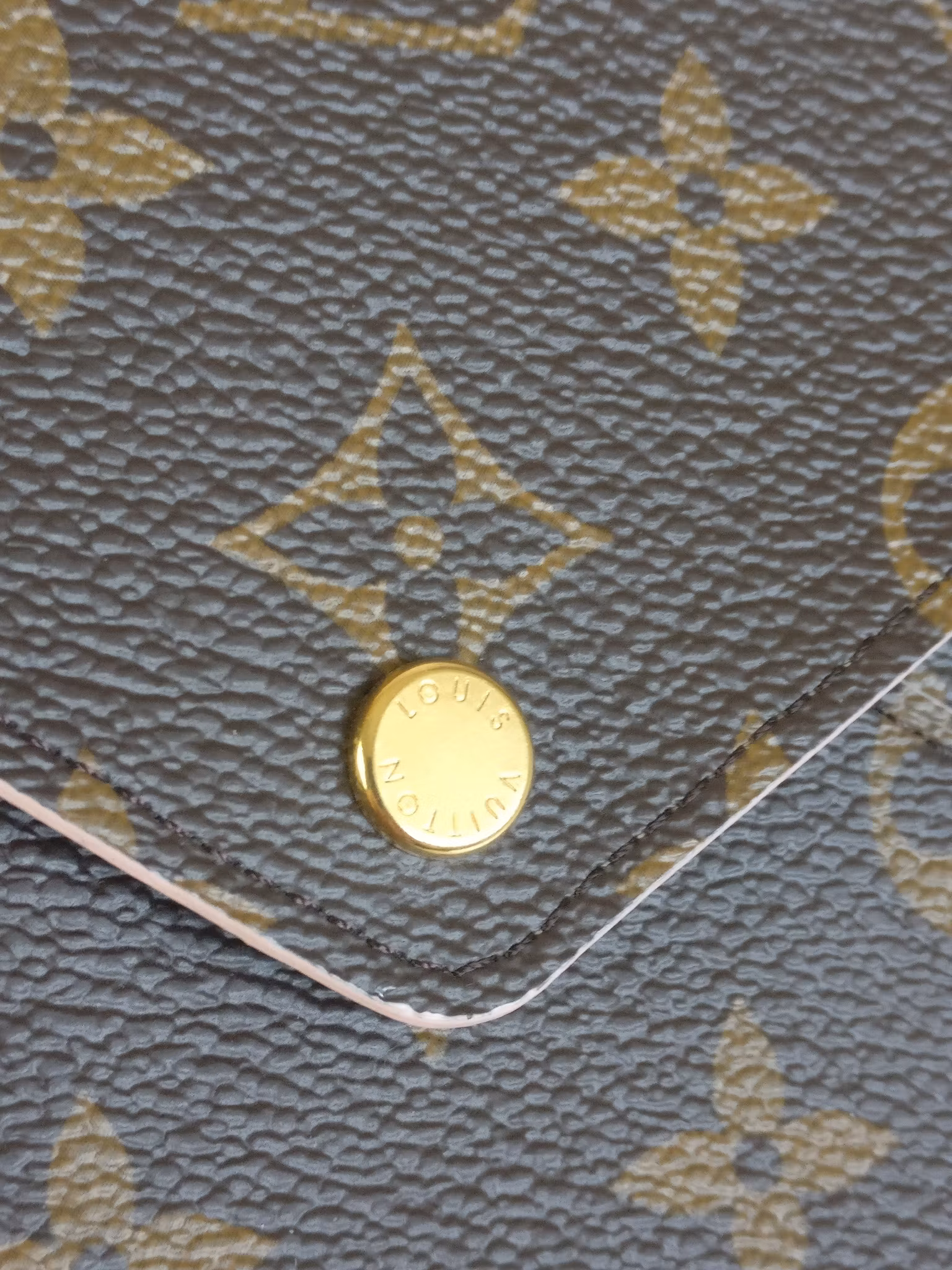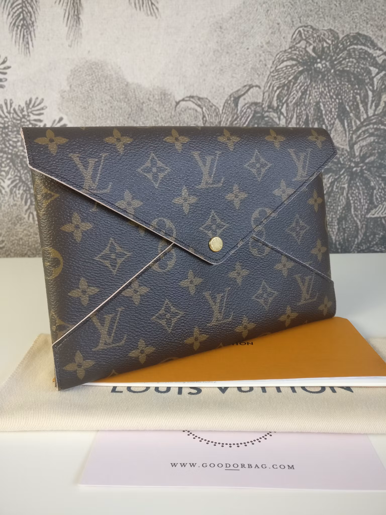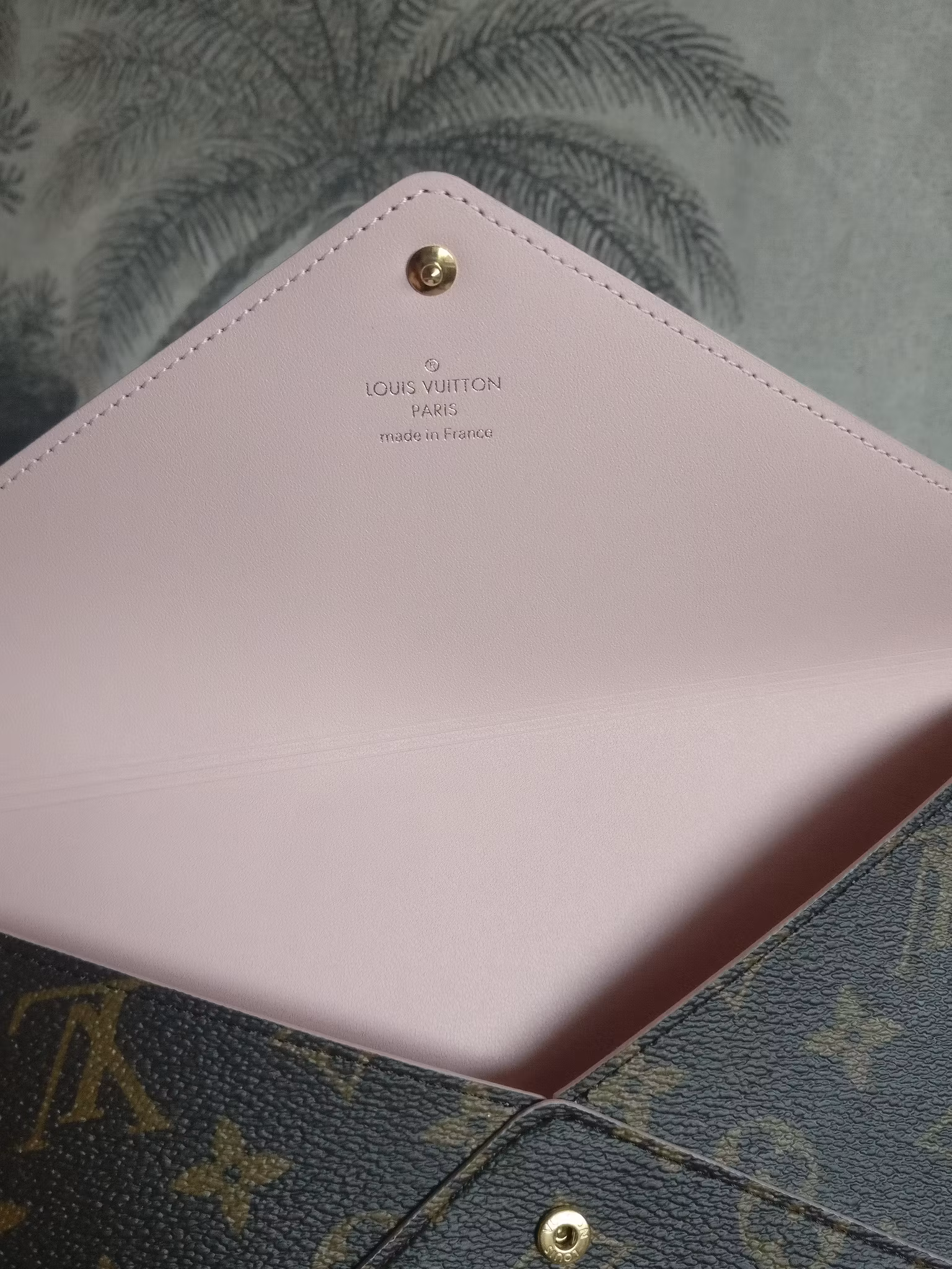 CONDITION/DESCRIPTION: Kirigami L in very good condition with minimal signs of wear, gently used. Monogram canvas in very good condition. Button in good condition with some scratches and minor color loss. Button works fine. Lined with ballerina pink leather. Clean inside, no odor. Fits an IPad Mini, smartphone and other small daily essentials. Comes with dust bag, copy of original order confirmation and certificate of authenticity.