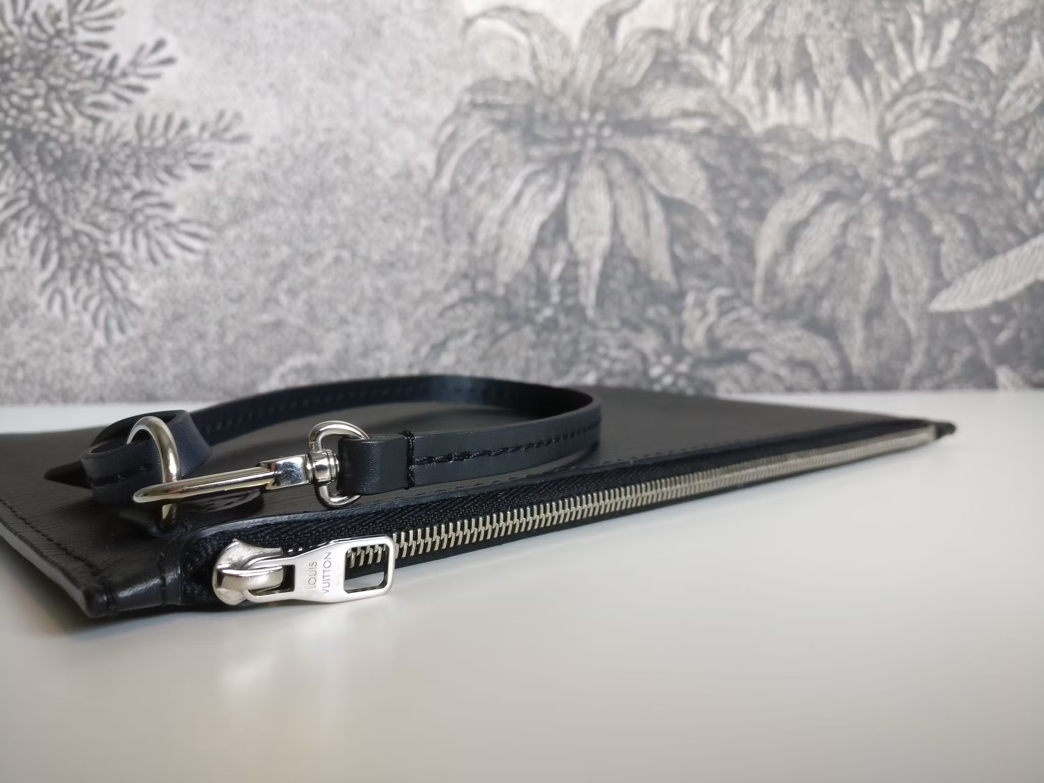 Pochette till Neverfull MM från år 2019 i svart epiläder i gott skick, med mindre bruksspår. Epiläder i gott skick med några mindre märken. Silver hardware i gott skick med mindre repighet. Glazing i gott skick. Dragkedjan fungerar fint. Insidan är fodrad i microfiber. Ren inuti med minimala bruksspår i fodret. Ingen doft i väskan. Kommer med äkthetsintyg.