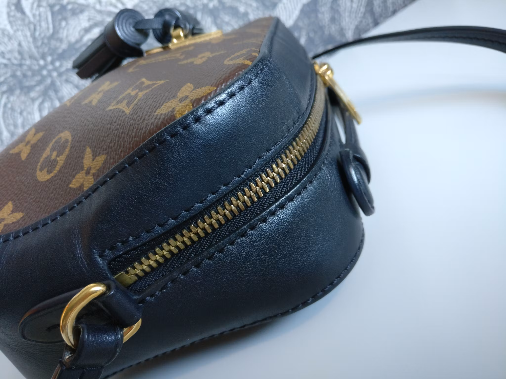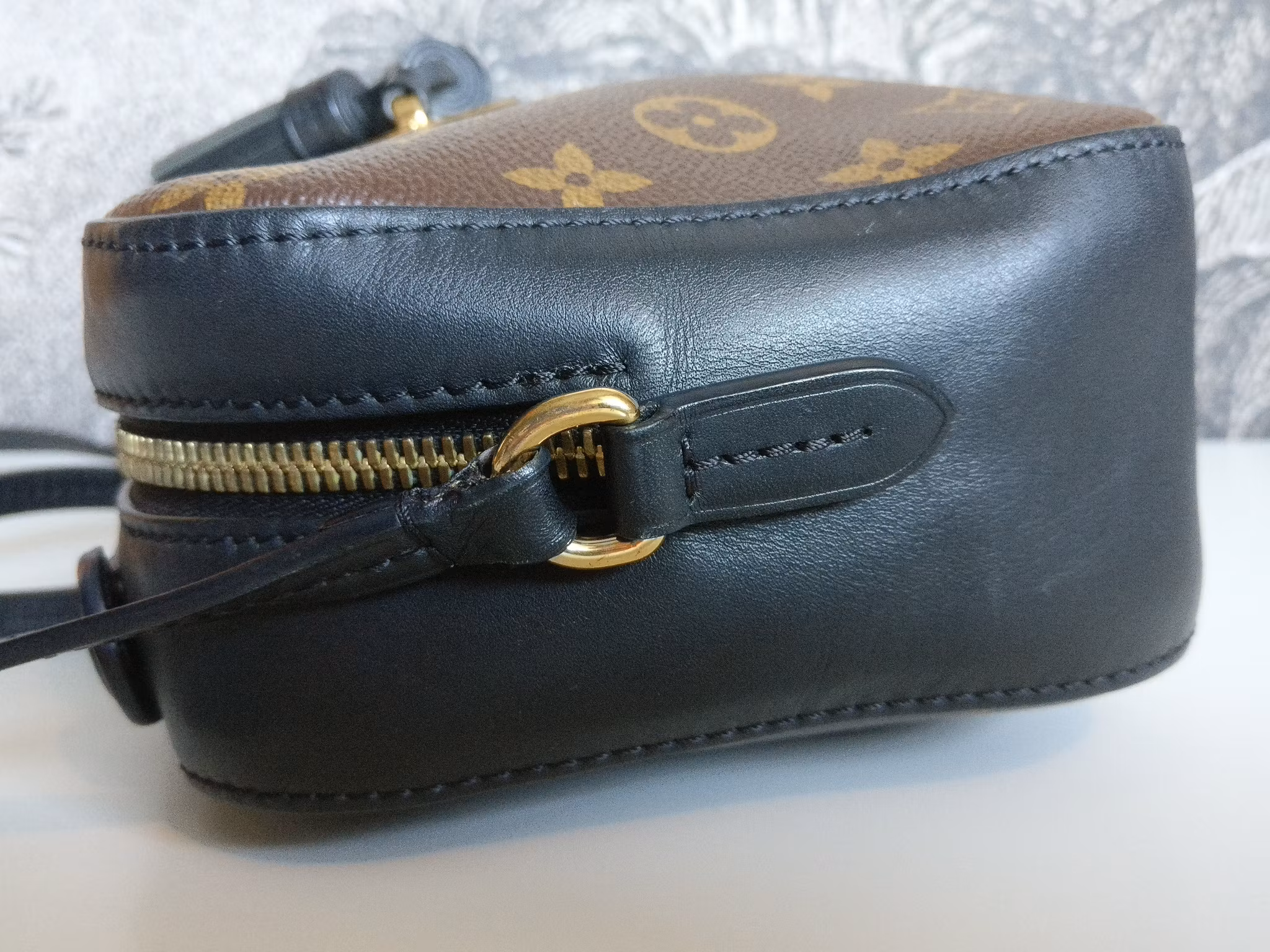 CONDITION/DESCRIPTION: Saintonge crossbody in good condition with some signs of wear. This bag consists of monogram canvas and black smooth cowhide leather details. Monogram canvas is in very good condition. Black leather in good condition, with a couple of marks and signs of wear throughout. Gold hardware in good condition with scratches and some color loss. Two compartments inside, lined in black fabric. Clean inside with minimal signs of wear, no odor in the bag. Shoulder strap in black leather in good condition, one of the strap bases has more wear and tear. Shoulder straps on this model may have to be replaced at some point. Zippers work fine, one feels slightly tougher than the other. Comes with certificate of authenticity.