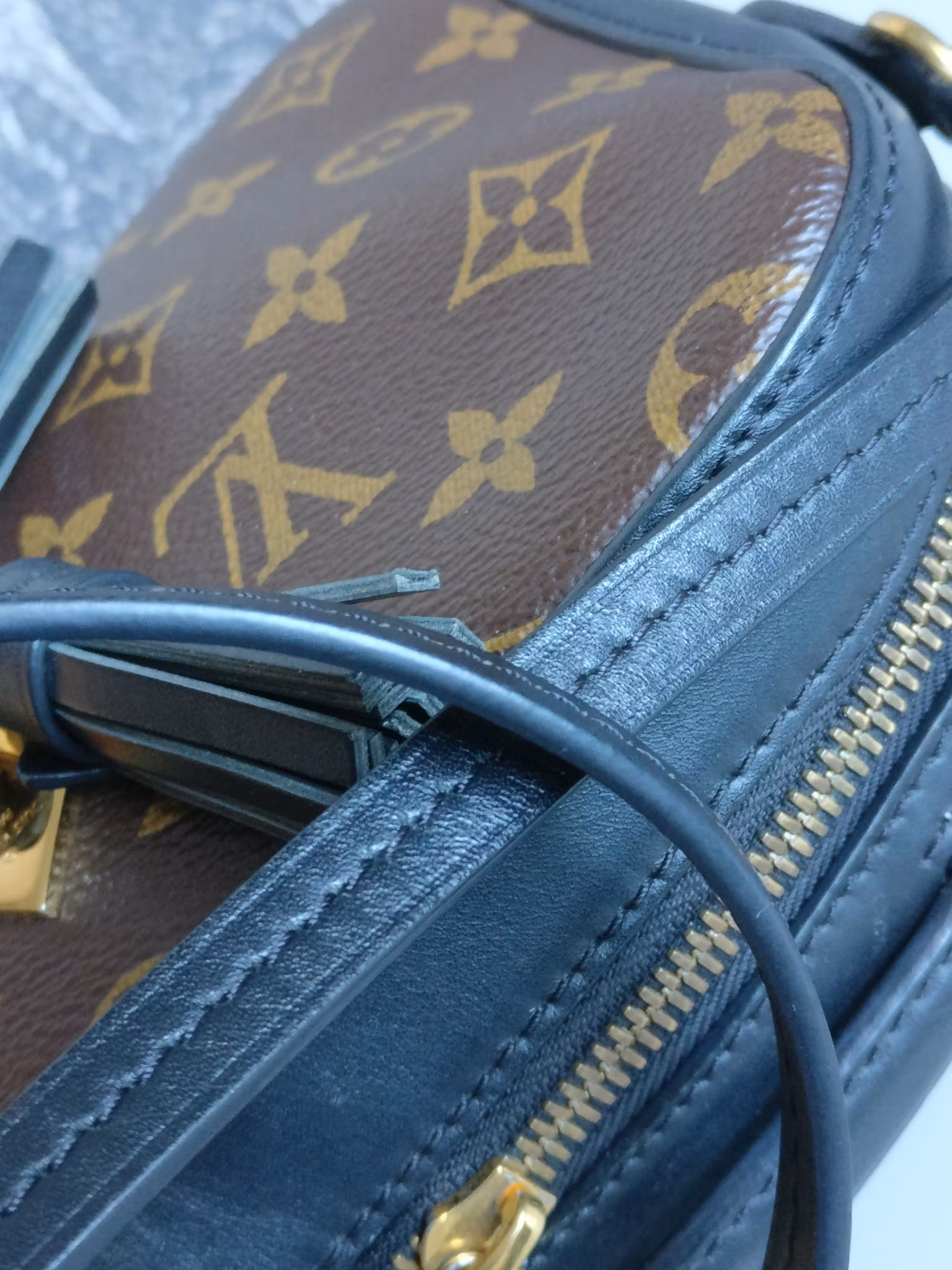 Saintonge crossbody i gott skick med bruksspår. Denna väska är tillverkad i monogram canvas med detaljer svart läder. Monogram canvas i mycket gott skick. Svarta läderdetaljer i gott skick, med några märken och mindre bruksspår genomgående. Gold hardware har mindre repighet och färgbortfall. Två fack inuti, fodrad i svart tyg. Ren inuti med minimala bruksspår i fodret, ingen doft i väskan. Axelband i svart läder i gott skick, ena axelbandsfästet har mer bruksspår och känns mjukt. Axelbandet på denna modell kan vid något tillfälle behöva bytas ut. Dragkedjorna fungerar fint, den ena känns möjligen något trögare än den andra. Kommer med äkthetsintyg.