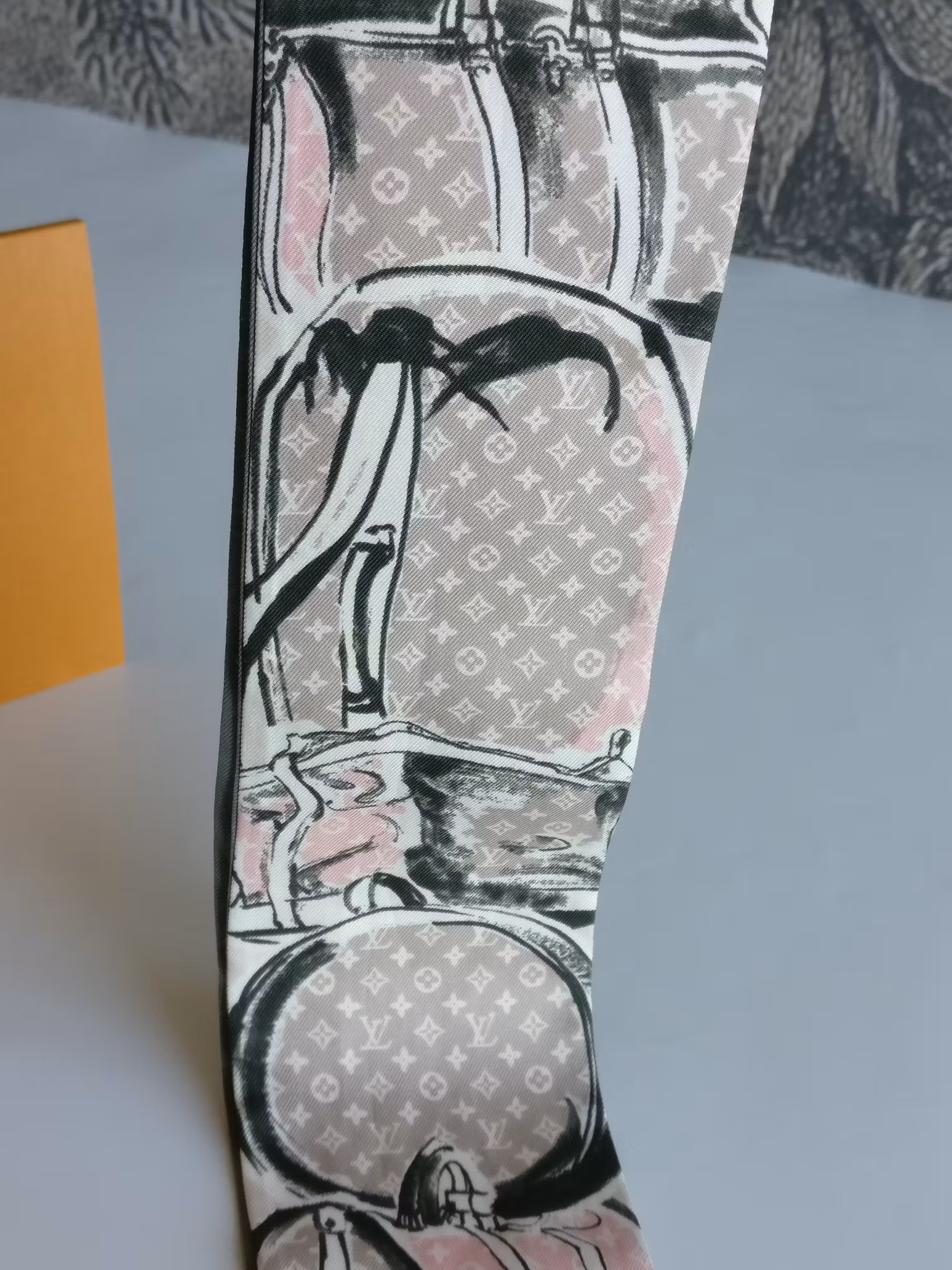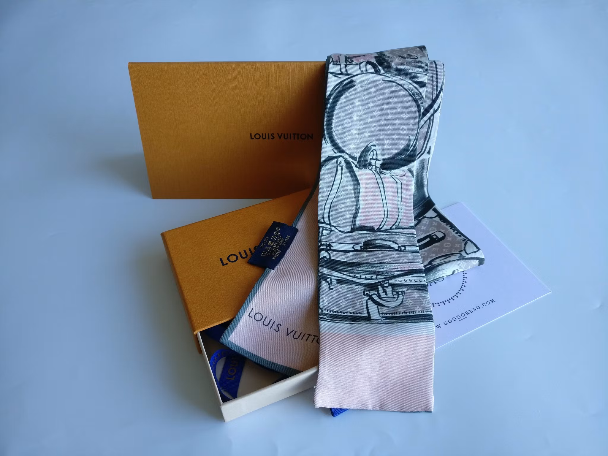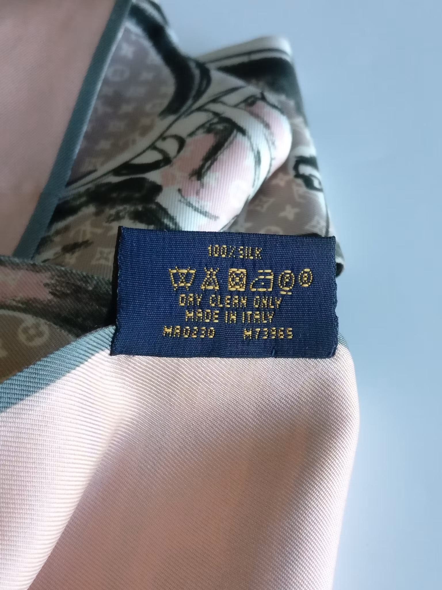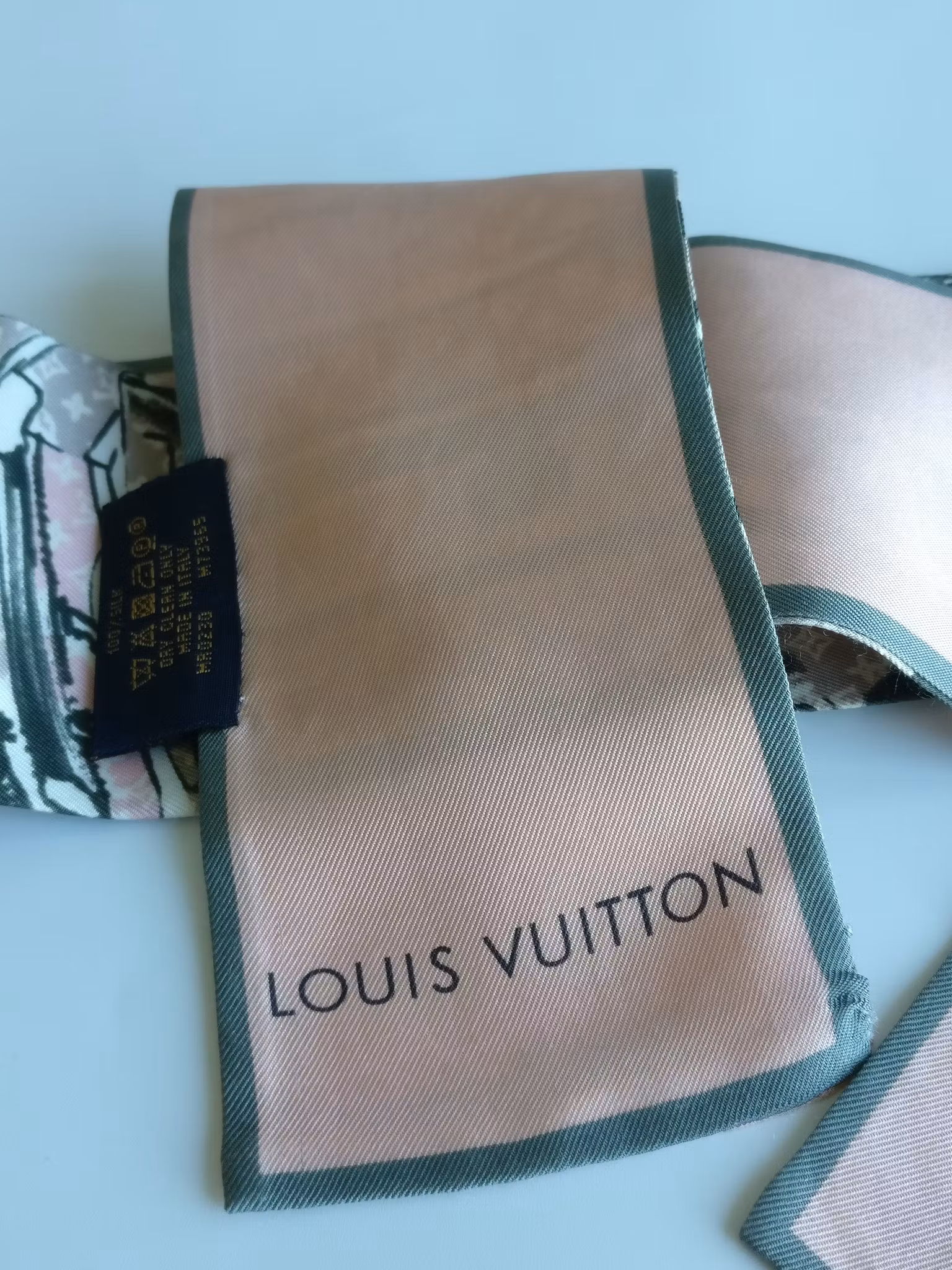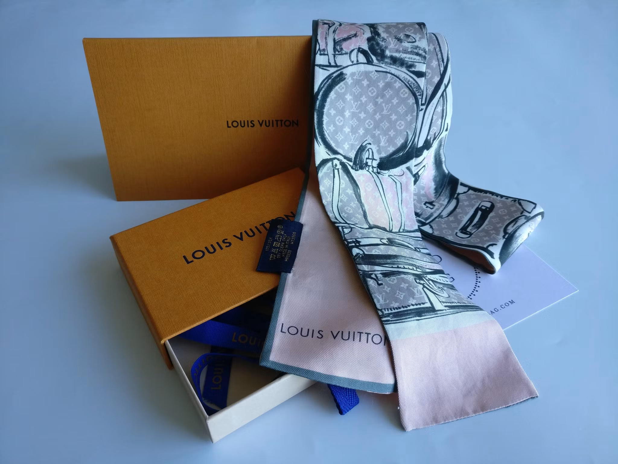 Silk bandeau Trunks rose poudre scarf i siden, print med Louis Vuittons klassiska trunkar och väskor i ljusrosa och gråbeige. I gott använt skick med små bruksspår, ingen doft. Det finns en rynka/tråddragning längst ned på kanten, vänligen se bild. Kommer med box, originalkvitto samt äkthetsintyg.